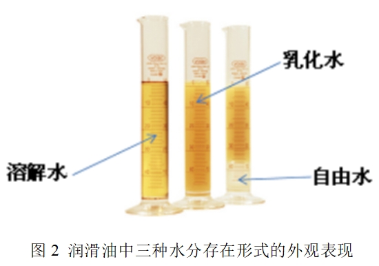 通常我們發(fā)現(xiàn)油品狀態(tài)透亮,不渾濁時,水分都是以溶解水狀態(tài)存在的。當溶解水達到飽和狀態(tài)時,油品會出現(xiàn)渾濁,有時甚至呈現(xiàn)乳化狀態(tài),這時的水分稱為乳化水。當呈現(xiàn)乳化狀態(tài)的油中的水分繼續(xù)增加時,油和水會分層,這時的水分稱為游離水。據(jù)研究表明,游離水的危害是最大的。