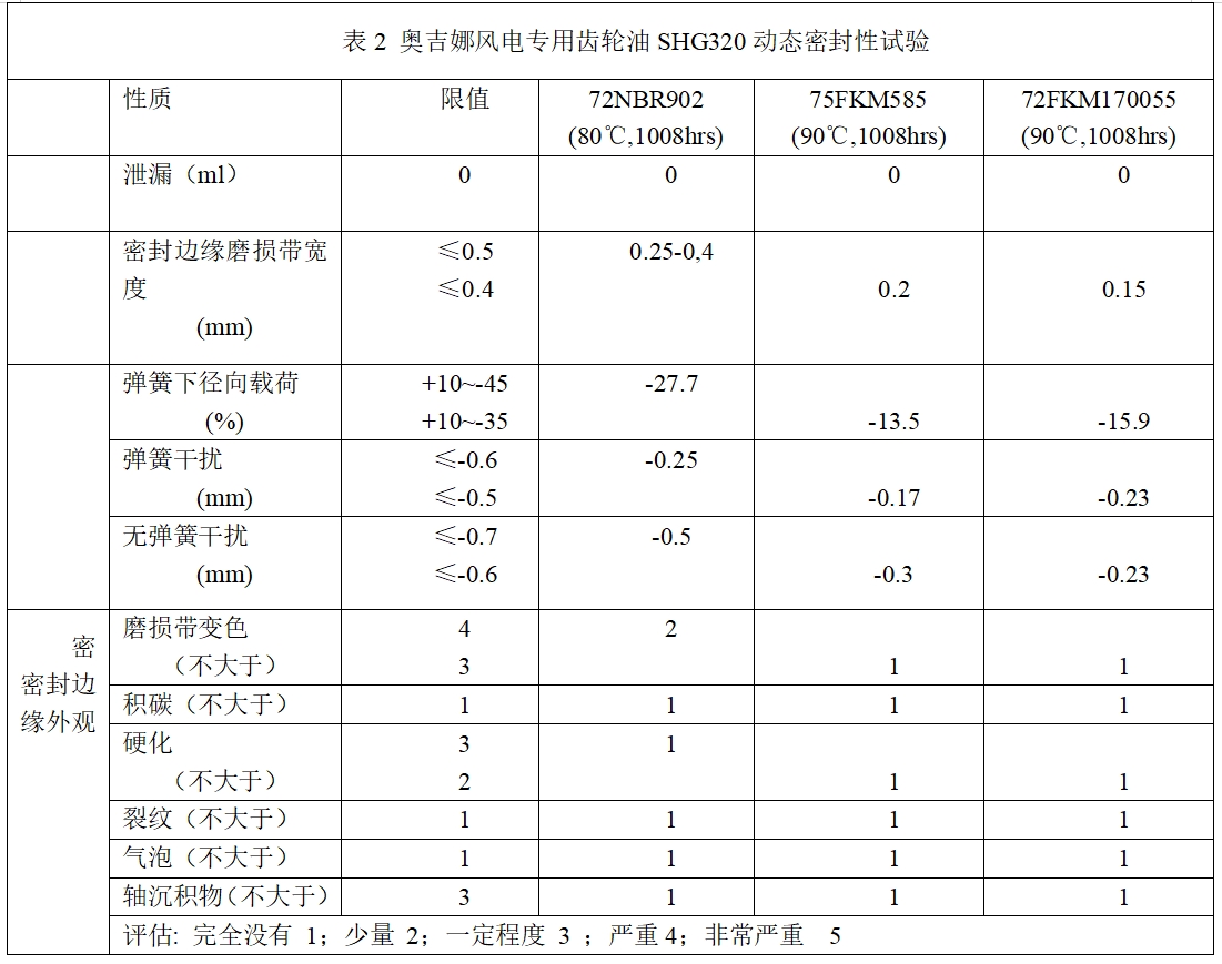 獲得弗蘭德認證的奧吉娜全合成風電專用齒輪油SHG320所通過的9項國際權(quán)威機構(gòu)評定中,很重要的一項就是齒輪箱橡膠件的靜態(tài)及動態(tài)相容性試驗,評估結(jié)果如表1和表2所示: